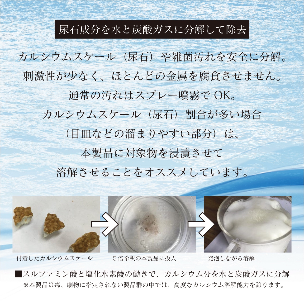 ●5~10倍希釈でご使用いただけます。(スケールが酷い場合は原液でもOK)