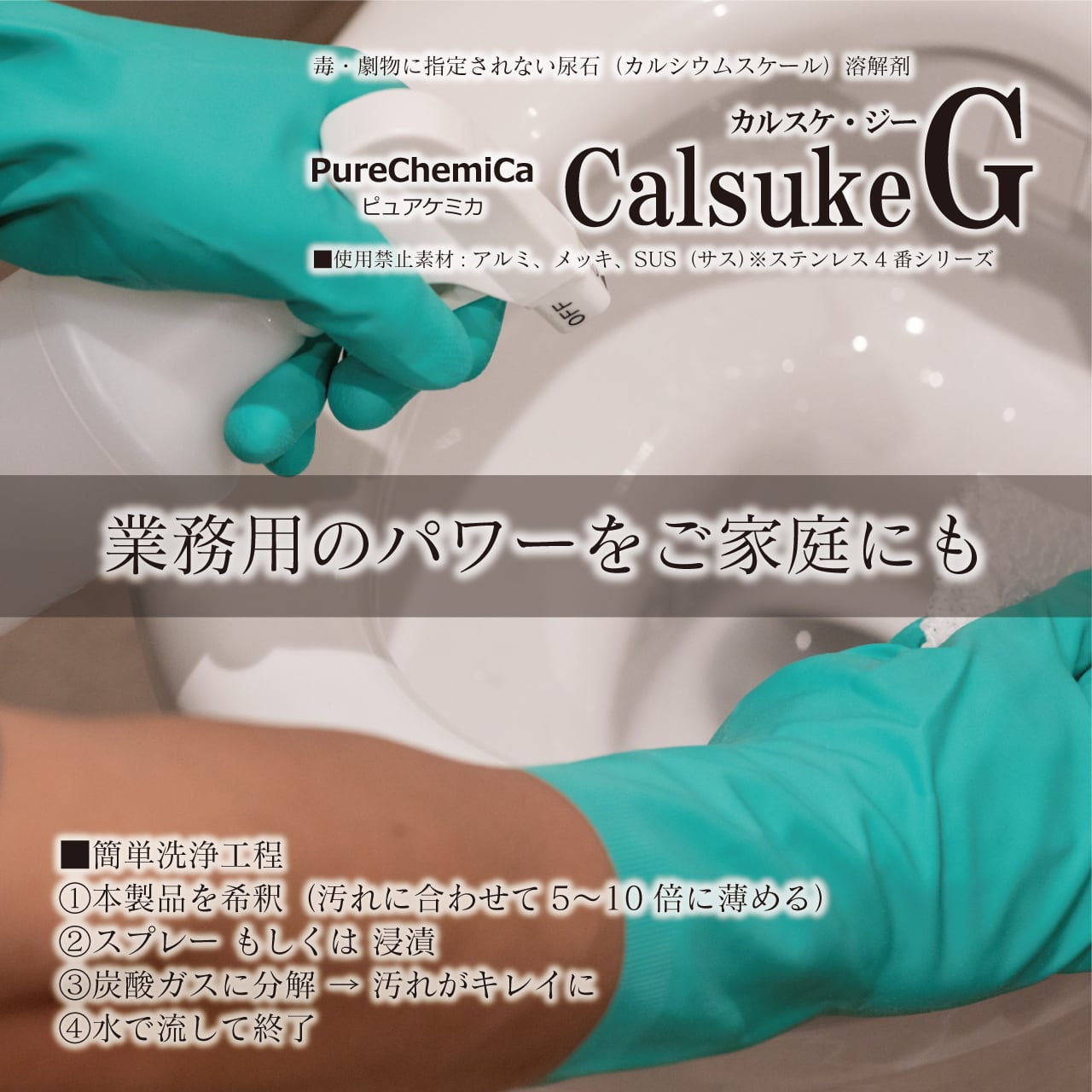 ●毒物、劇物に指定されないカルシウムスケール溶解剤。それが「カルスケG(ジー)」です。