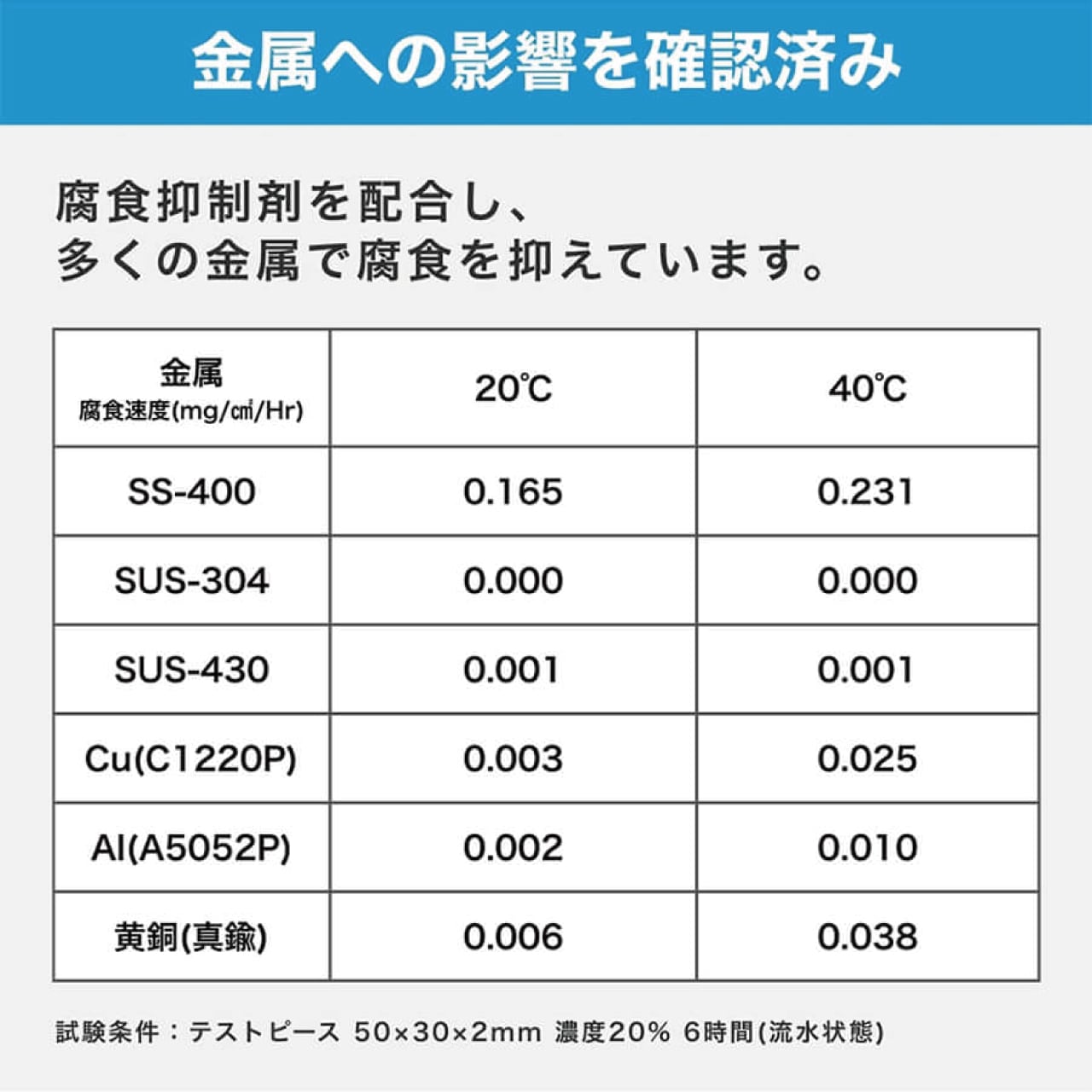 ・腐食抑制設計(多くの金属で影響確認済み)