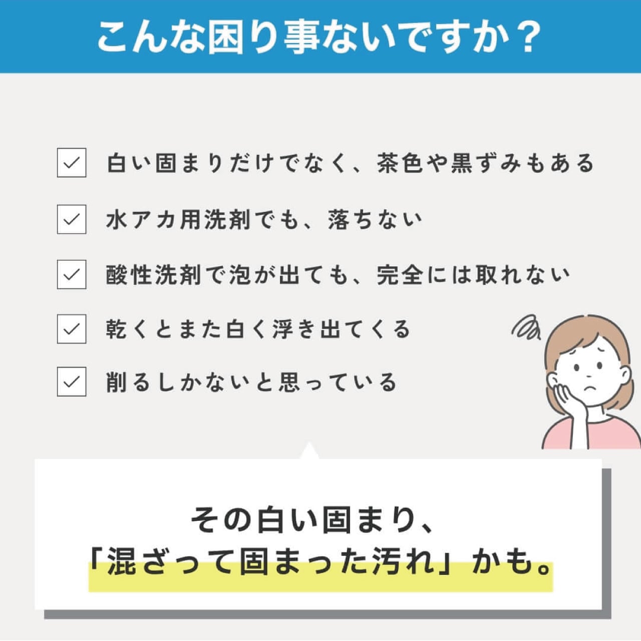 ・何を使っても落ちない白い固着汚れ