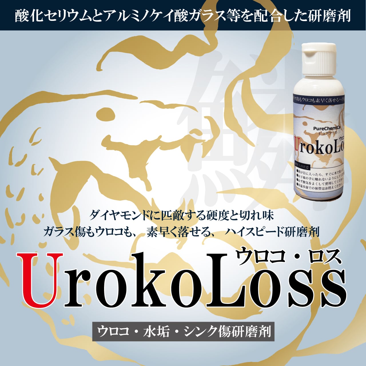 ウロコ・ロスは、水垢・ウロコ・シンク傷などの研磨剤です。 主成分は酸化セリウムとアルミノケイ酸ガラス等を配合した研磨剤。 刺激性がなく、安全に使用でき、研磨作用が極めて強く効果的です。