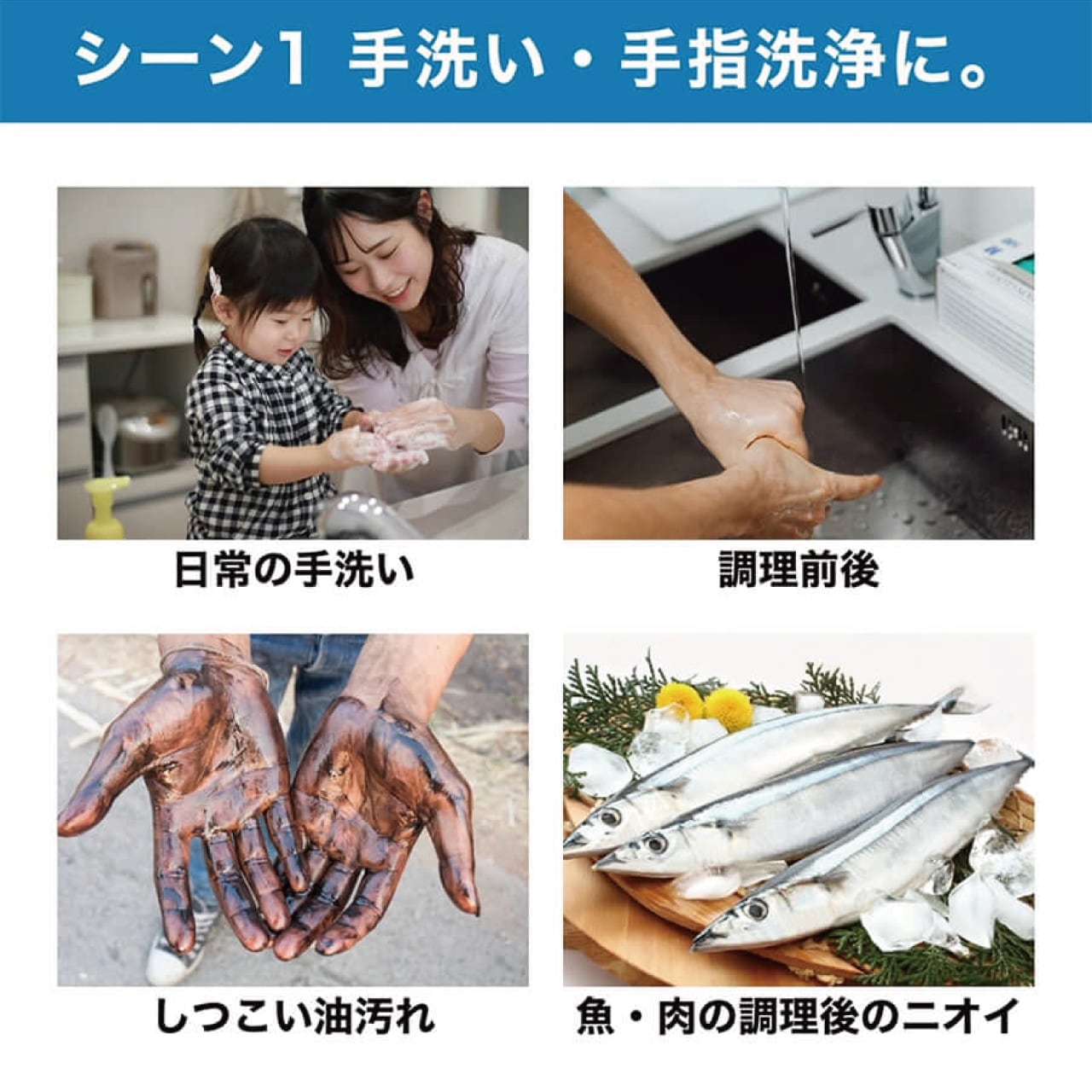 いつもの手洗いにはもちろん、食器・厨房設備・作業台など幅広い対象に使用可能。無香料設計のため、食品を扱う現場や医療・介護施設など、香りを残したくない環境にも適しています。